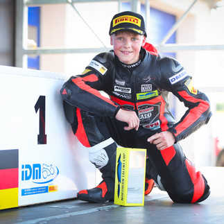 Im Q2 bin ich hinter den schnellsten Fahrern raus gefahren um Linie, Speed und Windschatten zu nutzen. Q2 - P4. Im zweiten Rennen hatte ich wieder ein sehr gutes Gefühl mit der Kupplung und somit einen perfekten Start - gleich auf P1 gefahren…. Zum Glück haben wir zusammen trainiert Stefan Nebel :). In der Zweiten Runde wurde ich dann Stück für Stück durchgereicht. Konnte aber bei der Führungsgruppe mithalten. Ich habe mir es erst einmal angeschaut und überlegte einen sehr guten Plan wie ich mich in der letzten Runde positioniere. F.Kratochwill und A.Urlass waren schon weit entfernt von der Gruppe. Beide sind in der letzten Runde gestürzt. Ich war zu dem Zeitpunkt dritter der Gruppe und konnte mich in der letzten Runde, in der vorletzten und letzten Kurve jeweils hineinstellen und kam als 1. über die Ziellinie. Klar war es Glück, aber es ist ein verdienter Podiumsplatz.